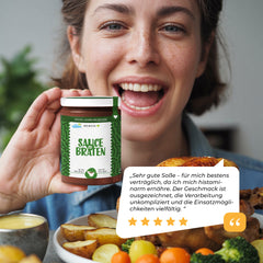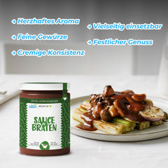 🍲 Vielseitige Anwendbarkeit: Egal, ob beim traditionellen Sonntagsbraten, knusprigem Hühnchen oder köstlichen vegetarischen Kreationen – unsere Braten-Soße verleiht jedem Gericht eine festliche und geschmackvolle Note.
